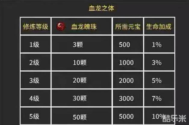 最高等级是20级总共是需要10863颗血龙珠子,元宝需要213.15万,最后的属性加成是生命加成百分之50。
