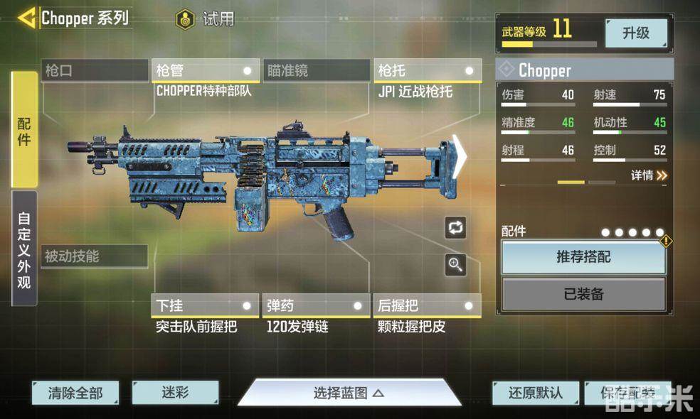 这把枪现在国服还没有出,如果你想尝试一下可以去国际服中体验,我们来看看chopper的优点,首先射速非常快,而且伤害也很不错,但是精准度不是很高,既然大家要腰射厉害的枪,精准度不高也无伤大雅,不管是新手还是老手都很推荐使用哦。