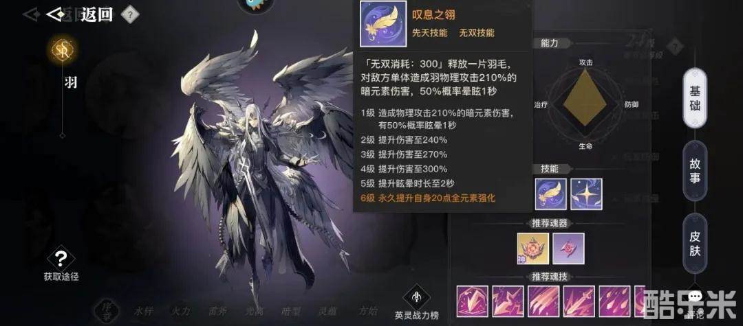 最后如果你是氪金大佬玩的是输出圣堂,直接选择当前版本超强SSR输出英灵羽就可以了,能够带来很多的攻击力和力量加成,大家也可以多学强力、力量、连击技能,进一步提升输出空间。