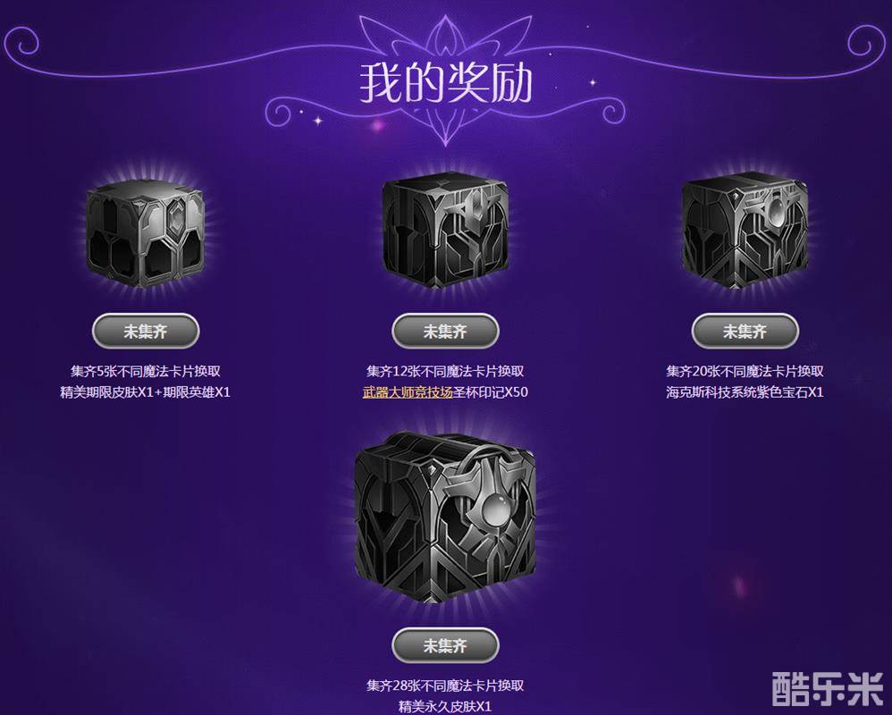 根据集齐的卡片的数量可以领取不同奖励,有海克斯紫色宝石与永久皮肤。