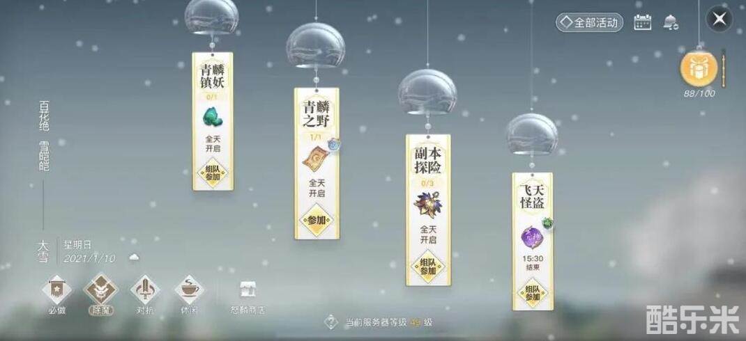 我们可以组队去刷副本能获得攻绩点,困难副本每周可以共享两次奖励,而弑神副本每周只能共享一次奖励。另外青麟镇妖与暗影心魔也很推荐玩家们去尝试,其中青麟镇妖简单来说就是爬塔。