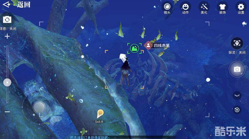 大家再回到小岛上找云之光,他不在需要和他的徒弟对话。我们回到海中要去汐海战碑、古珊瑚广场、古海螺居、幽光鲸落这四个地方,游过去拍照就可以了,如果你找到就开启相机,变成绿色就拍照。