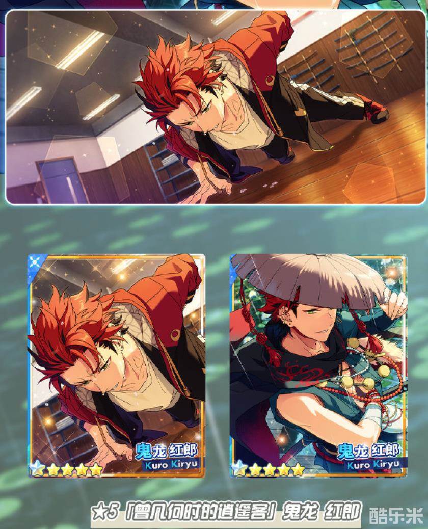 ★5【曾几何时的逍遥客】鬼龙红郎附带MV服装+房间服装,2次突破附带SCR房间服装,满破附带SCR-MV服装。★4【拆招的逍遥客】神崎飒马附带房间服装。