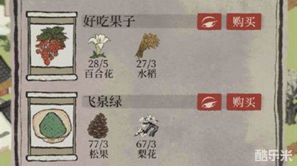 好吃果子需要玩家使用5个百合花和3个水稻来进行兑换。