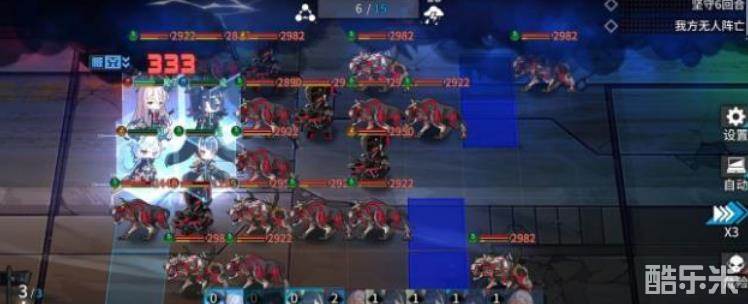 这是正常防守的编队,不需要练度,只要有紫婧或紫雯之一加绝境逆袭(r卡,极易获得,只要别一键分解r卡就行)就可以拖到天荒地老。如果可以的话,多带几个人一起也挺好,加加势力,毕竟势力有属性加成和奖励。