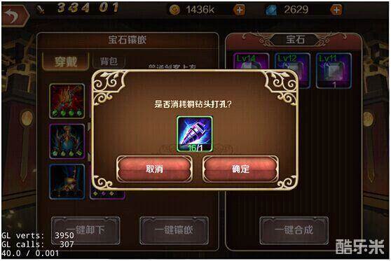 Ps.只有达到一定等级或品阶的装备才可以进行宝石镶嵌操作