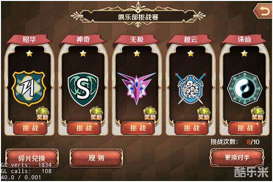 根据游戏背景设置的俱乐部挑战赛系统,通过此系统选取指定俱乐部战队进行对战。每天有10次机会进行挑战,可以消耗钻石更换对手。