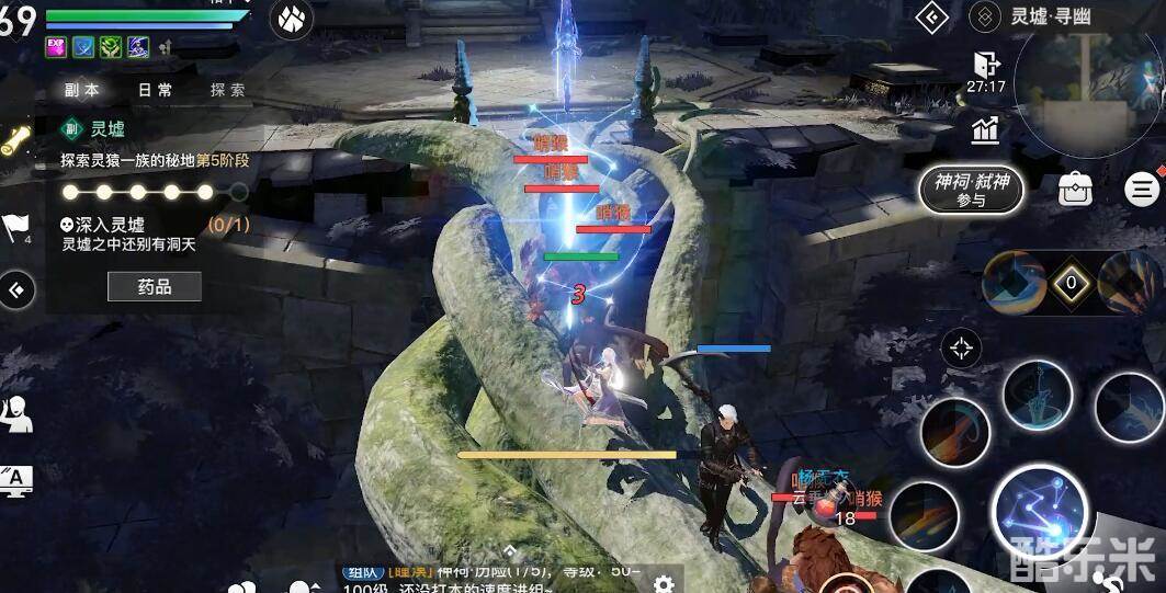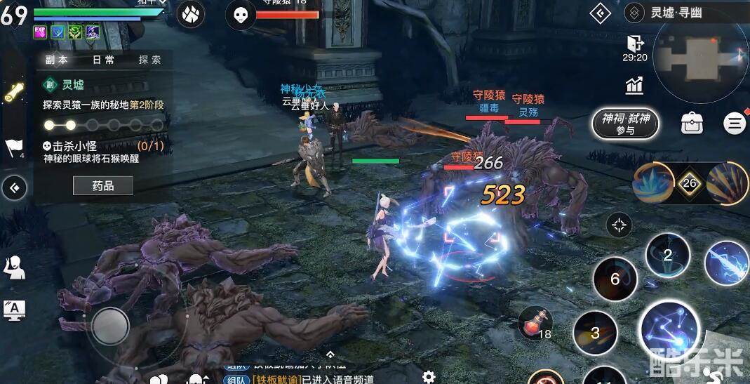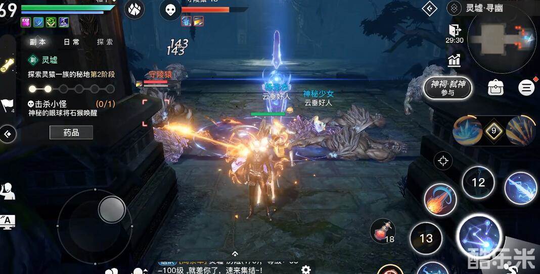 骤雷可以增加普通攻击的机会,我们锁定好对敌人就是选择一个安全的站位了,玩家们和敌人的距离最好保持在星落、星剑的范围,这样玩家们就能插入星剑技能了,随后就是等技能冷却、无双冷却。