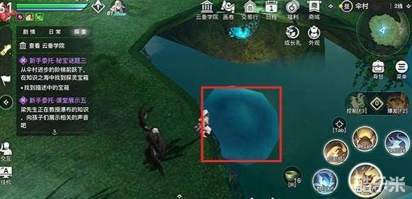 从伞村进步的阶梯前跃下,在知识之海中找到探灵宝箱。