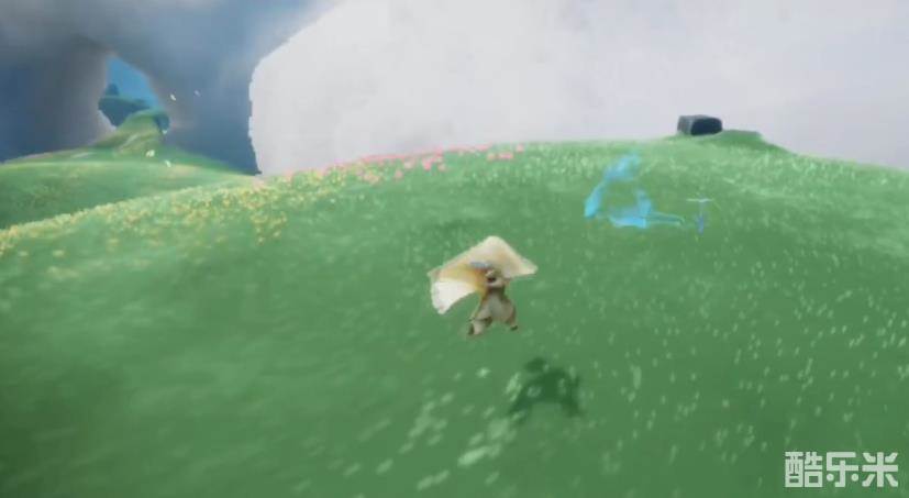 3、再飞到有光翼的洞穴上方,触碰到蝴蝶结先祖;