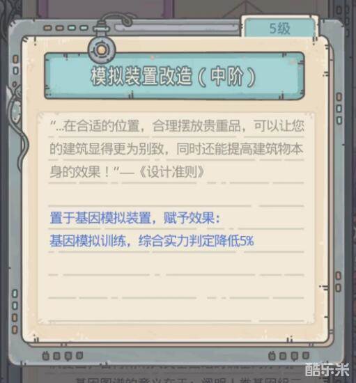 下面戒戒来说一说具体的贵重摆放,基因图谱肯定能入选五个贵重品之一(推荐放在科技栏),因为基因图谱的技能可以让基因模拟训练的时候综合实力判定再降低5%。