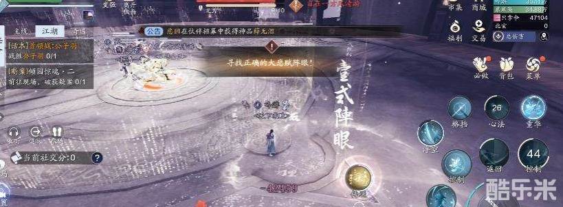该技能会将大家与公子羽隔开,大家非但不能攻击BOSS,还会受到持续伤害,只有找到正确的阵眼才可入阵。