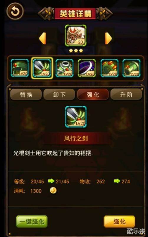 《百万大魔王》装备系统介绍:装备强化是玩家提升实力的基本途径,玩家可以通过消耗游戏币对装备进行强化,强化等级不能超过主城等级,强化到一定的等级才能升阶,装备升阶需要指定的材料。