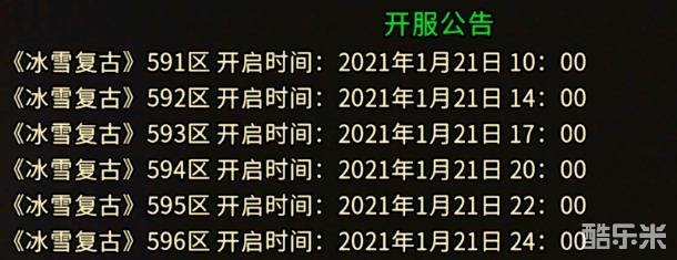 《冰雪复古》591区开启时间:2021年1月21日10:00