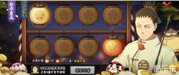 成功收取灯笼道具将点亮活动内的对应种类灯笼,点亮所有灯笼后,可于2月5日至2月11日在活动界面免费领取新忍者奈良鹿丸[新春限定]。