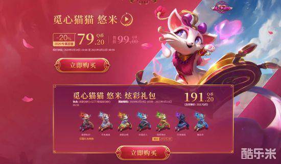 而在“觅心猫猫 悠米”炫彩礼包方面,礼包限时特惠价格为191.20Q币,礼包包含皮肤本体及7款皮肤炫彩,其中“就想粘你”炫彩将仅随礼包出售。两款皮肤炫彩礼包的限时出售时间与皮肤本体的限时售卖时间保持一致。