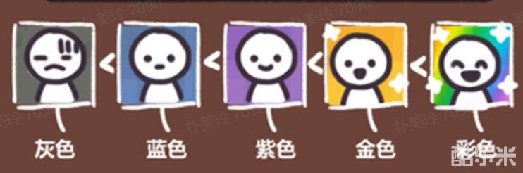 角色们从稀有度上分为五类,以卡片背景颜色区分,从低到高依次是灰色、蓝色、紫色、金色、彩色。稀有度越高的角色在战斗中的表现越突出。