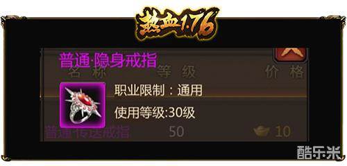 隐身戒指:佩戴者使用后将对怪物处于隐身状态,只有被攻击的怪物才能看到自己!
