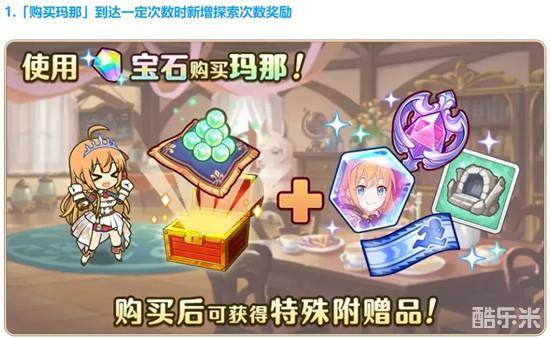 在第六期的本地化笔记中,国服公主连结实装了买玛娜送探索次数的额外奖励。(原本是日服1.5周年实装的内容,国服提前了九个月)