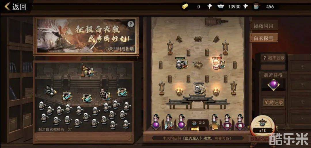 活动内容:活动期间,各位大侠前往酒馆,进入侠客行玩法之后,便可在【白衣探宝】夺宝奖励中看到本次更新的奖励啦~