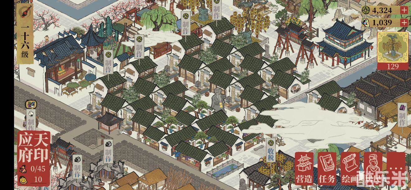 2、成衣店升到二级,棉花和布匹没升级,家具升了一个二级,画室一级。