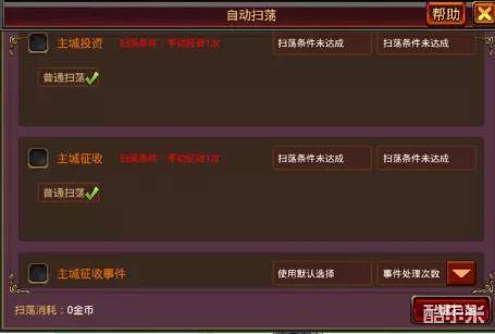 自动扫荡增加4个系统:主城投资、主城征收、主城征收事件、日常任务。