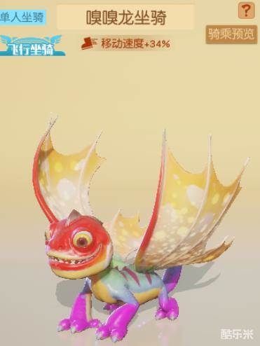 这个坐骑是陆地和飞行两用坐骑,移动速度34%。龙型外观的坐骑造型很不错。