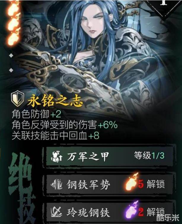 守备 角色防御+2 角色反弹受到的伤害+6% 关联技能击中回血+8