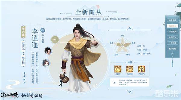 时空交织,再结三生六界之缘!《仙剑奇侠传》人气随从即将跨界而来,李逍遥、赵灵儿、林月如即将震撼登场。山河斗酒,倚剑逍遥,李逍遥化身学士,为浮世天地斩妖除魔!五气朝元,普度众生,赵灵儿化身尚食,力保阁下浮世探索之路!心无瑕秽,明镜澄清,林月如化身侍卫,为阁下尽心守护珍视之人,感受独一无二的仙侠之旅!