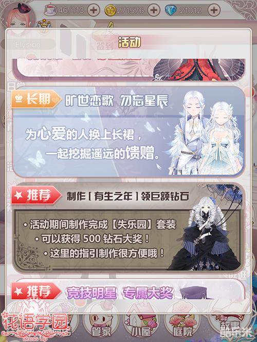 《花语学园》为大家准备了超多迎新活动。“有生之年”活动带领大家制作出超美的失乐园套装,还可以领取500钻石;“永恒星辰”活动,挖掘女神的馈赠收获永恒星辰套装。进入游戏,在点击活动按钮可以看到更多迎新活动!内容丰富,奖励丰厚,游戏上线后大家自己去感受吧!