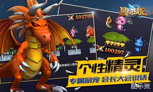 能卖萌能耍酷,可以战斗可以谈心!这才算《冒险战记》的贴心宠物、强势伙伴、战斗助力!达到相应入门等级时,精灵系统就能激活,这里有精灵搞怪小恶魔,还有长耳朵奶油胖丁兔,机灵的龅牙狡兔更有顶级SS可爱粉红甜心等你来领取!从它们的幼年时期到完全成熟,它们的外貌和属性加成都会随着升级而不断变化。多个小精灵一起出战属性还能叠加噢~再也不用担心只选一个小精灵出战时,在属性分配上的纠结了!