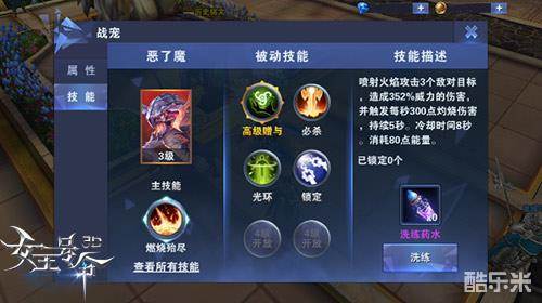 宠物神技助战,战斗强撸不虚!除了强大的属性加成之外,《女王号令》宠物系统当中的战宠还拥有着众多强悍的被动技能以及专属主技能,其中主动技能能够在战斗中带来回血、伤害、减速等效果,而被动技能则可以帮助勇士强者们提升攻击或者触发暴击等等。