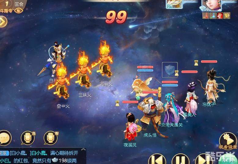 第五十八关:这关中敏套路杀,主角抗仙法抗混,比无涯子快,拉好无涯子,其他中敏伙伴输出,混,就过了。