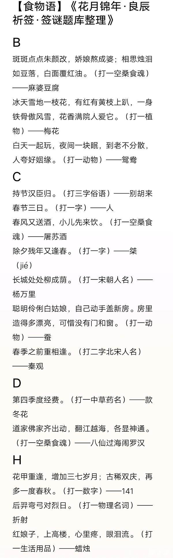 【食物语良辰祈签签谜答案大全】