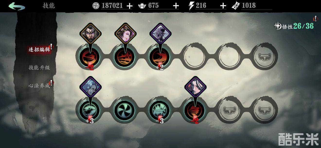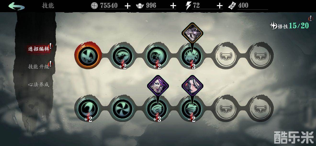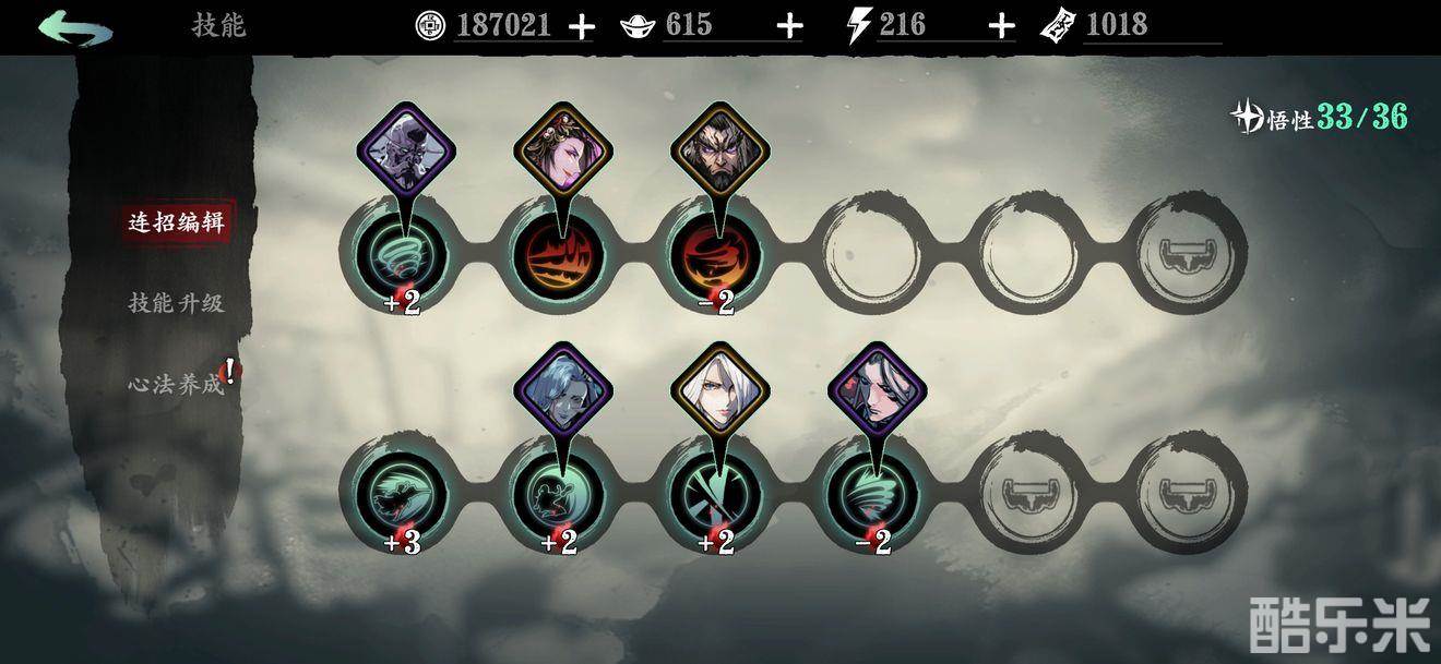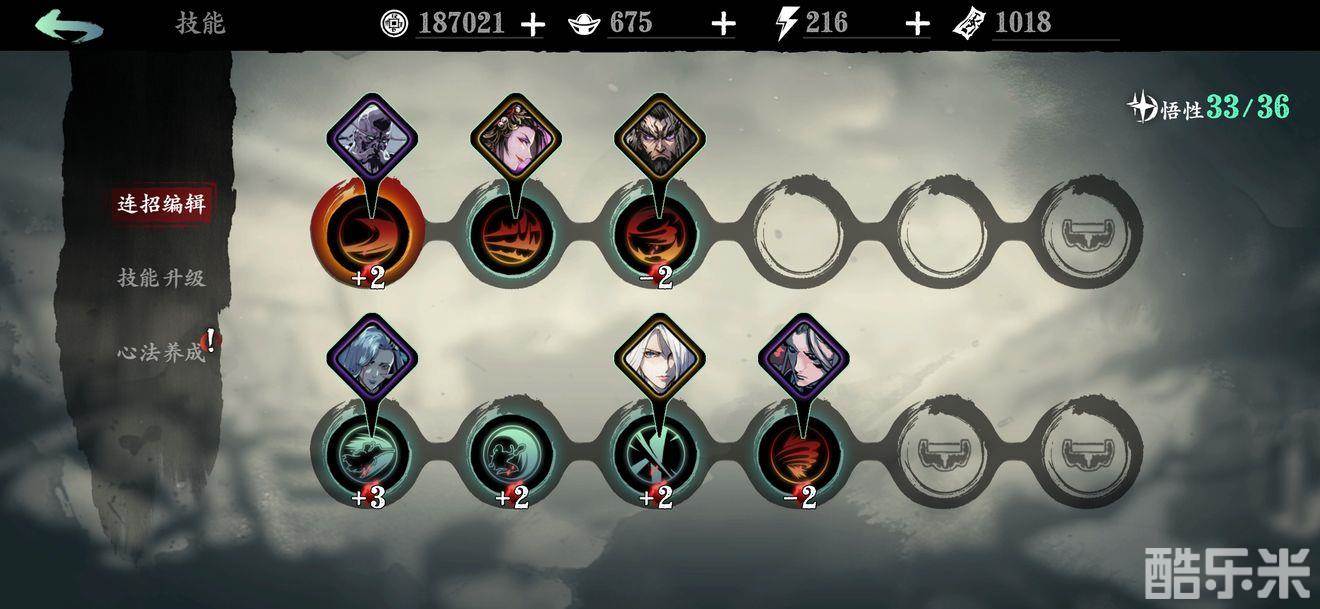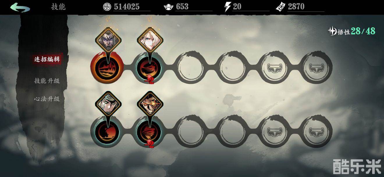 ②技能链上的杀气获取量应大于或等于使用量,这样才能打出足够的伤害