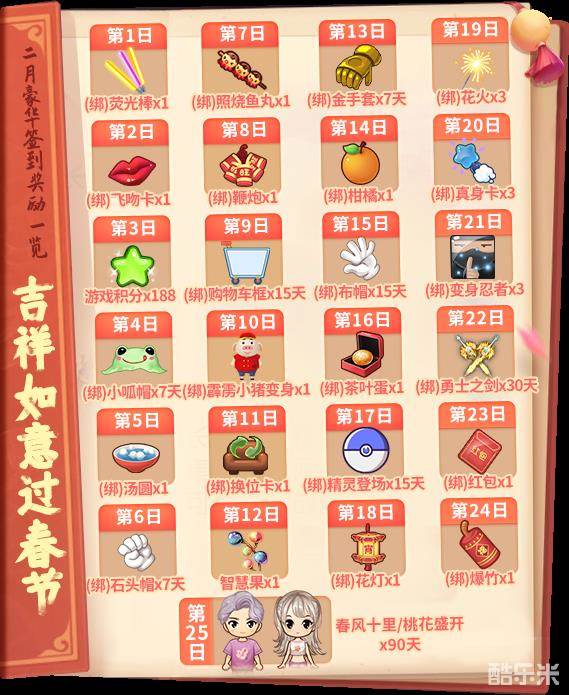 2021年2月豪华签到奖励一览: