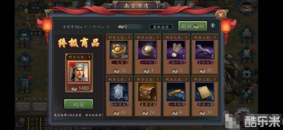 改版后的南蛮入侵活动在每个周六和周日开放,开放时地图会刷新出南蛮孟获军,一开始从一级开始,被杀掉后会继续刷新下一个等级的南蛮,以此类推,最大是30级南蛮,每次战斗时间固定为60秒钟。因为南蛮商店里会给很多好东西,所以我们要利用有限的资源尽量多打几次。
