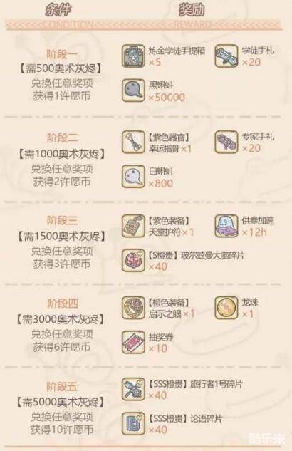 紫色招募令x1、许愿币x2、黑蝌料x50000、