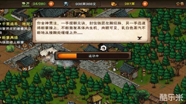 平安结装备获取方法:做完乾元功任务,去落霞镇找铁匠断掌再续,每次要300真气,乾元功要十重。