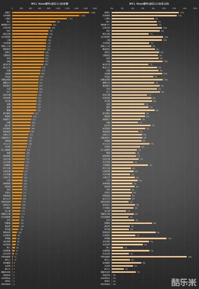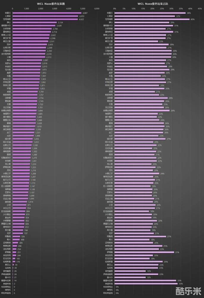 而末尾的布劳缪克丝、维克托、阿拉希盆地三个服务器,至今拥有Naxx WCL战斗记录的人数依然为0,可谓是名副其实的“鬼服”。