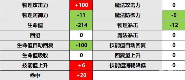 rank12>rank11的属性:物理攻击力,技能值上升,命中