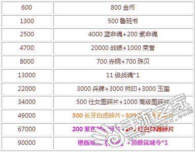 累计充值3000金币,可获得 1500高级秀女图,2000紫命魂2000,4w蓝命魂,3000红命魂