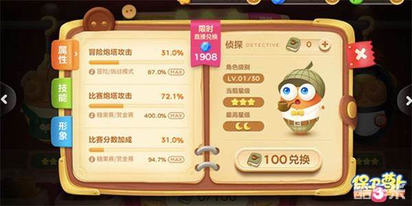 侦探萝卜的能力简直“令人发指”,冒险炮塔攻击加成最高可达87%,糖果赛炮塔攻击加成高达400%,比赛分数加成可以达到94.7%,是目前属性加成最高的萝卜,没有之一。目前侦探萝卜主要有两大技能,可以对玩家的游戏体验带来强力增益!它的主动技能“蛛丝马迹”发现怪物弱点,让炮塔对怪物伤害全面增加,是快速消灭怪物的强力技能。另外一个被动技能比赛模式攻击力额外增加最高20%,加上主动技能和炮塔攻击加成,足以横扫怪物群。满级的侦探萝卜让玩家获取高分更加简单,各位玩家可以通过娴熟的操作技巧和巧妙的布置炮台,利用侦探萝卜的强力技能和高额加成,获得较高的游戏排名。