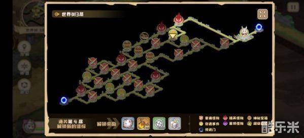第三层最左路第一个事件点可以进精英战摸一个神器,第二个事件点群体1层流血3次战斗。