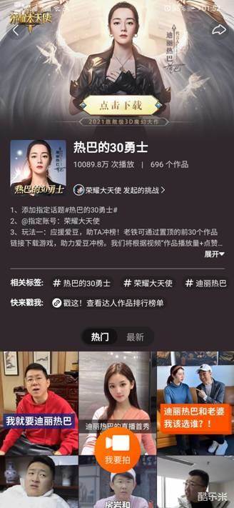 对于游戏厂商来说,Z世代是基数庞大且不可忽略的用户群体。过去主打30-50岁人群的魔幻游戏,也越来越看重覆盖年轻一代的新用户。洞察到这一趋势,快手磁力引擎为37网游量身定制了游戏营销创新玩法,发挥90后小花迪丽热巴的超高人气与快手达人在年轻人群中的分量,以挑战赛的形式为《荣耀大天使》按下宣发启动键。