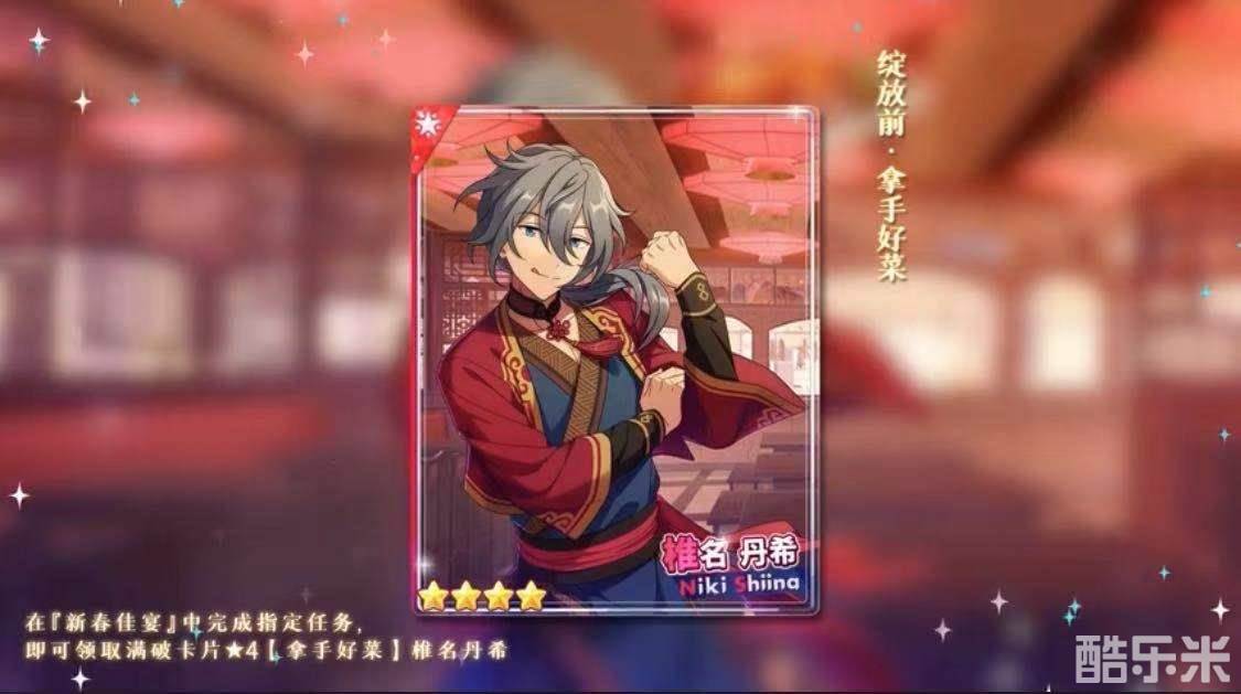 欢度新年,怎么少得了年夜饭餐桌上那一道道美味佳肴,下面就让厨艺担当椎名丹希为大家献上自己的拿手好菜吧!2月11日00:00至2月20日23:59,「新春佳宴」活动开启,完成指定任务数量,最高可获得满破卡片★4【拿手好菜】椎名丹希!同时还有【上级招募券x11】多种奖励福利可领取!