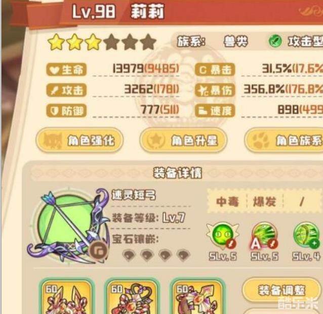 我本人是没有高练度带标记的前排,所以选择将核心输出莉莉换上送的60套装来保证自身血量。