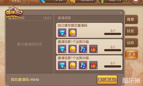 为了让玩家可以更好的与自己的朋友分享《弹弹岛2》的游戏乐趣,本次更新后玩家可以通过发送邀请码,邀请游戏外的朋友下载游戏,注册游戏帐号。被邀请的玩家进入游戏后,填写邀请码,成功可获得一次性奖励。被邀请的玩家达到一定的角色等级、VIP等级条件后,发起邀请的玩家可以获得奖励。