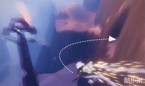 拿到第三个之后,然后玩家可以在如图所示位置,先在右边点亮机关,然后坐船前往下一站。