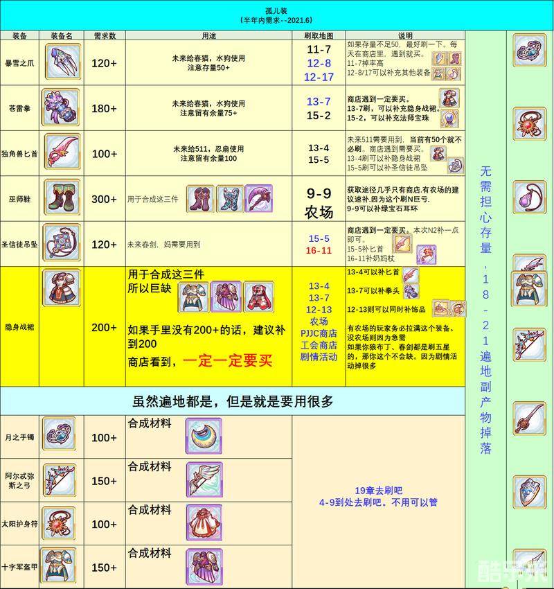从装备需求量来说,还是有很多可以重叠刷的啦。